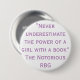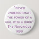 "Never underestimate the power of a girl with a book.” - The Notorious RBG, Supreme Court Justice Ruth Bader Ginsburg quote button that can be further customized with font or colour and/or transferred to another product.
