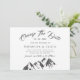 Belle apparence naturelle couplée à la police décorative et illustrations des montagnes et l'écriture personnalisée "l'aventure commence". Monogramme personnalisé et la date avec votre photo à l'arrière pour le changement unique de la carte de date