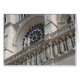 This is the facade of Notre Dame de Paris, a gothic cathedral in Paris, France. The beautiful gothic architecture of this medieval church and the exterior of the stained glass windows are on display in this photo. Notre Dame is also known as Our Lady of Paris. This close-up showcases the detail of the rose window and the statues adorning the exterior of the stone cathedral. Notre Dame is a famous and popular Parisian tourist attraction located on an island in the Seine River called Ile de la Cite. It is one of the most famous churches in the world.