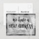 Cette carte postale moderne de changement d'adresse dit "nous avons une nouvelle adresse" dans un script élégant écrit à la main, sur un texte superposé sur votre photo personnelle. La façon idéale de faire savoir à vos amis et à votre famille que vous avez déménagé.