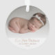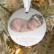 Un ornement spécial pour les nouveaux parents pour célébrer leur premier Noël en tant que maman et papa Le ornement à deux côtés présente une photo de bébé préférée avec un groupe de couleur crémeuse le long du fond. Notre premier Noël en tant que maman et papa dans une typographie rose moderne en or. Personnalisez avec l'année en cours.