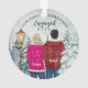 Personnalisé Notre premier ornement engagé de Noël présente une scène magique de forêt enneigée avec un couple debout dans la neige parmi les pins de Noël et un lampadaire. Facile à personnaliser avec les noms du couple engagé, et année. Un fiançailles de Noël unique pour ce jour férié. Trouvez d'autres combinaisons de couleurs dans notre boutique.