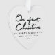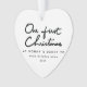 Un cadeau de Noël mémorable pour les nouveaux parents. Cette saison des Fêtes, envoyez ce joli cadeau de Noël aux nouveaux parents pour commémorer la naissance de leur enfant. Le décor présente "Notre Premier Noël" dans une police noire superbement lettrée sur un arrière - plan blanc. Personnalisez l'ornement en remplaçant l'exemple de nom de bébé et d'année.