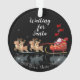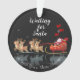 Nous attendons Père Noël Ho ! Ho ! Ho ! Vacances d'hiver - Ornement en céramique - avec "We Wish You a Joyeux Noël!" Souhaite Du Texte, Des Lettres. Joyeux Nouvel An et Joyeux Noël de Noël Evénement. Conte de fées d'hiver de Noël. Paysage neigeux Imaginaire avec Père Noël et Cadeaux, rennes, chute de neige, flocons de neige. Belle illustration pour l'art et la maison > Décor de la maison > Décor de Noël > Décor de Noël, Décor de Noël, Collection d'hiver. Beau Cadeau. Conception avec modèle texte. Personnalisez-les en ajoutant un nom ou un texte de voeux.