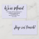Gardez vos amis et votre famille à jour avec votre nouvelle adresse en utilisant ces cartes d'enceinte simples et élégantes. Vous pouvez les insérer dans vos envois sur le thème du mariage ou les partager en personne, selon vos besoins. Que vous soyez marié(e) ou que vous souhaitiez simplement un design unique pour que votre tribu sache comment vous trouver, cette carte est suffisamment polyvalente pour n'importe qui. Il présente de jolis graphiques typographiques qui lisent "We've Moved" sur le devant et "Keep in touch!" sur le dos, en utilisant une police de script moderne, décontractée, manuscrite. Utilisez les champs modèle pour ajouter tous vos propres détails afin de personnaliser ce design pour votre propre usage. Si vous souhaitez modifier la jolie police sans-serif simple que j'ai utilisée pour le texte modifiable, ou si vous souhaitez déplacer des lignes ailleurs, cliquez sur le lien pour customiser la carte plus loin. Vous pouvez changer l'arrière - plan en n'importe quelle couleur. //