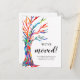 Cette carte postale design et moderne Moving Faire-part permet à la famille et aux amis de connaître votre nouvelle adresse. Il est décoré d'un arbre en mosaïque coloré. Customisez cette carte avec votre nom et votre nouvelle adresse. Parce que nous créons notre oeuvre, vous ne trouverez pas cette image exacte d'autres designers. Mosaïque originale © Michele Davies.