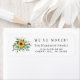 Simple rustique nouvelle maison / nouvelle adresse de retour étiquette d'adresse avec un bouquet d'aquarelle de fleurs de tournesol et de sauge vert eucalyptus verdure et simple typographie moderne. Personnalisez "We've Moved !" et ajoutez votre nom et votre nouvelle adresse.