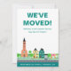 Ce faire-part moderne et en mouvement dispose d'un quartier coloré avec une belle église. Retournez la carte pour révéler un élégant motif à rayures grises et blanches au dos de la carte.
