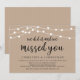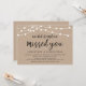 Belles lumières guirlandes de ferme rustique moderne, police de caractères noire sur fond kraft marron, annonce d'élopement de mariage, carte d'invitation (Nous l'avons fait et vous nous manquez). C'est parfait pour votre réception de mariage et fête de célébration après-mariage. Ajoutez vos détails dans la même police / lettrage.