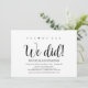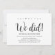 Oui, nous pouvons! Nous l'avons fait! Cette carte d'invitation de mariage rustique kraft sur le thème de l'élopement est parfaite pour votre réception de mariage et votre fête de célébration post-mariage. Ajoutez vos détails dans une police / lettrage noir assorti.
