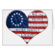 Coloré rouge, blanc et bleu original 13 états Betsy Ross drapeau américain en forme de coeur, avec la première ligne du Préambule de la Constitution des Etats-Unis d'Amérique.