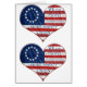 Coloré rouge, blanc et bleu original 13 états Betsy Ross drapeau américain en forme de coeur, avec la première ligne du Préambule de la Constitution des Etats-Unis d'Amérique.