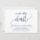 Cette carte d'invitation au design de calligraphie moderne (nous n'avons pas pu attendre) est parfaite pour votre annonce de mariage ou célébration d'élopement. Ajoutez vos détails avec une police/lettrine assortie en bleu marine.