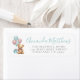 "We can BEARly wait" Baby shower Adresse de retour Label. Cette adorable étiquette d'adresse de retour comporte un joli ours en peluche bronzé avec un arc rose, et une boîte cadeau bleue, tenant un mélange de ballons d'aquarelle rose et bleu, placé sur le côté gauche. Le côté droit affiche votre nom dans un script bleu clair avec l'adresse dans une police serif gris classique. Le design charmant, avec une boîte cadeau bleue, est parfait pour un baby shower genre neutre ou surprenant. Le mélange de polices joueuses et élégantes ajoute une touche douce, et vous pouvez customiser les couleurs et l'arrière - plan pour correspondre à votre thème. Tous les textes, polices et couleurs peuvent être customisés pour correspondre à votre style d'événement.