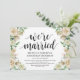 Nous sommes mariés, carte d'invitation pour la réception de mariage en fuite. Cette carte d'invitation au thème neutre de printemps est parfaite pour votre réception / fête de célébration de mariage. Ajoutez vos détails dans une police / lettrage noir assorti.