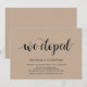 Nous sommes partis en cachette, Cartes d'invitation pour la réception de mariage en fuite. Cette carte d'invitation rustique sur papier kraft est parfaite pour votre réception de mariage et la fête de célébration post-mariage. Ajoutez vos détails avec une police / lettrage noir assorti.