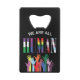 L'ouvre-bouteille sur le thème de la justice sociale comporte un texte multicolore "Nous sommes tous humains" et des mains représentant la communauté LGBTQ
