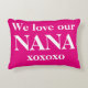 Nous Vous Aimons Nana Mignonne Grand-Mère Coussin. Coussin décorative moderne Rosy Pink, fait un grand cadeau pour les grand-mères à la fête des mères, aux fêtes, ou pour son anniversaire. Lavable en machine. Fermeture à glissière cachée pour faciliter le lavage. Infos coussin incluses. Un cadeau parfait, Nana le chérira ! Garantie de remboursement de 30 jours. Navires dans le monde entier rapidement. Fabriqué aux États-Unis. We Love You Nana Cute Grand-mère Coussin, créé par l'artiste original RjFx. *Tous droits réservés. #Nana #CadeauGrand-Mère #ZazzleMade