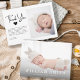 Simple New Baby Birth Card Faire-part présente un texte superposé délicieux présentant le nom du nouveau-né et les statistiques de naissance. Au verso, vous avez la possibilité d'inclure une deuxième image et un message concis. Le design est élégant et simple, mettant l'accent sur l'occasion joyeuse d'accueillir le nouvel ajout à la famille. Fêtez l'arrivée du bébé avec cette carte de faire-part de naissance de charme, en affichant magnifiquement tous les détails essentiels tout en fournissant un parfait souvenir pour vos proches. Partagez le bonheur avec cette carte personnalisée et pleine de charme.