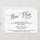 La distinction de cette suite est due à la police de script complexe et tourbillonnante utilisée pour les phrases d'accent. Si vous devez informer vos invités que votre mariage a été reporté, cette carte vous offre une option élégante. Dans cette pièce, la police calligraphique a été utilisée pour créer un graphique représentant les mots "Nouveau plan". Utilisez les champs modèles pour ajouter vos données personnelles et faire de cette conception votre propre. L'arrière - plan peut être changé en n'importe quelle couleur. Veuillez communiquer avec toute demande spéciale ou customiser de l'aide. // 98 //