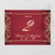 These wedding table number cards, in stunning tones of resplendent pale gold and rich red, are an elegant blend of Art Nouveau and Victorian sensibilities, with a sophisticated frame of lovely swirls and delicate scrollwork, and text in elegant script and classic serif and block fonts. The text is completely customizable - personalize with your own info, and each card with a table number!