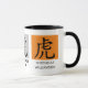 Moderne Personnalisé Chinois Nouvel An DE LA BOUE TIGER, conçu sur trois côtés avec le symbole chinois zodiaque lunaire pour le TIGER en carré des couleurs populaires du bleu, gris et orange. Il y a trois TEXTES PERSONNALISABLES, où vous pouvez ajouter votre nom, votre salutation (par ex. Joyeux anniversaire) ou créer votre propre texte. Cette année de la tasse TIGER ferait un grand ajout à votre collection de tasse de zodiac chinois, et peut être donné pour les anniversaires et Noël, ainsi que des cadeaux de Nouvel An. Choisissez parmi une large sélection de modèles de Nouvel An chinois pour chaque signe du Zodiac chinois sur les cartes, décoration de maison, vêtements et cadeaux, conçus par Berean Designs.