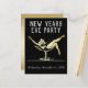 Nouvel An vintage Invitation de la soirée mettant en vedette une fille avec de longues jambes nageant dans une grande coupe de champagne. Ajoutez les détails de la fête pour vos invités de l'autre côté de la carte postale, sur un faux arrière - plan de feuille d'or.