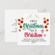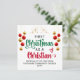 Élégant PREMIER NOËL EN TANT QUE NOUVEAU CHRÉTIEN Carte de voeux avec TEXTE ET DATE PERSONNALISABLE. Le design montre le vert de Noël. et la typographie de l'écriture rouge de Noël avec des billes rouges et dorées suspendues et des étoiles dorées au centre. Une belle carte de voeux pour un nouveau croyant chrétien. Vous pouvez PERSONNALISER LE TEXTE à l'avant et personnaliser votre message à l'arrière. Idéal comme carte de Noël pour les nouveaux croyants célébrant leur premier Noël chrétien.