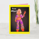 Cartes de voeux colorées pour la chirurgie de la hanche mettant en vedette un gentleman des années soixante donnant le signe de paix.