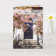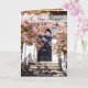 Une délicieuse carte New Home avec de jolies fleurs de cerisiers roses devant la porte d'entrée d'une maison de ville plutôt ancienne. Par beau temps, le soleil projette des ombres tamisées dansant sur les marches en pierre.