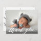 Annoncez Naissance de votre bébé et remerciez votre famille et vos amis pour leurs cadeaux et leurs souhaits avec ces jolies cartes postales de remerciement faire-part de naissance. Design avec 1 photo du bébé, blanc merci script de superposition en police manuscrite tendance sur le devant. Ajoutez plus de détails, comme les statistiques de naissance etc au dos de la carte postale. Veuillez me contacter si vous avez besoin d'aide pour cette conception.