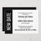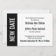 Voici une carte audacieuse et moderne pour avertir vos invités s'il est nécessaire de changer votre date de mariage. Utilisez les champs modèles pour ajouter vos détails personnels et faire de cette conception unique et simple votre propre. Un bloc de couleur sur la gauche est noir, correspondant au texte et à l'arrière de la carte ; "NOUVELLE DATE" apparaît en gras blanc sur cette bande sur la gauche. Toutes les polices et couleurs sont également modifiables. Veuillez communiquer avec toute demande spéciale ou customiser de l'aide. D'autres pièces avec un autre libellé sont également disponibles dans la collection.
