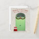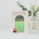 Cette conception de vacances de Noël présente des doubles portes vertes avec une fenêtre à dessus palladien pour un nouveau message de maison pour les vacances. Il y a une guirlande de feuillage persistant sous la fenêtre et un sac de Père Noël rempli de cadeaux sur les marches. Personnalisez le texte sur le devant et le dos, supprimez tout texte ou cliquez sur personnaliser pour sélectionner un style de police, une taille et une couleur différents.