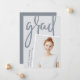Un faire-part moderne de graduation de photo comporte une photo verticale ou à orientation portrait avec un léger inclinaison pour un regard neuf. Personnalisez avec le nom du diplômé, l'école et l'année de fin d'études. Ajoutez un message personnel à l'arrière, ainsi qu'une photo supplémentaire.