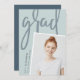 Un faire-part moderne de graduation de photo comporte une photo verticale ou à orientation portrait avec un léger inclinaison pour un regard neuf. Personnalisez avec le nom du diplômé, l'école et l'année de fin d'études. Ajoutez un message personnel à l'arrière, ainsi qu'une photo supplémentaire.