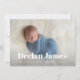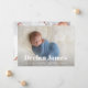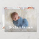 Les annonces de naissance modernes et élégantes présentent votre photo préférée de nouveau-né en plein saignement, avec le nom du bébé recouvert de lettres blanches. Personnalisez avec les statistiques de naissance du bébé sous. Ajoutez six photos supplémentaires au dos dans une mise en page collage, avec les noms des parents ou de la famille au centre.