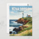 Nova Scotia retro vector travel design. Nova Scotia is almost entirely surrounded by water and is home to over 13,000km of coastline, thousands of lakes, lush valleys, four UNESCO World Heritage Sites, the world's highest tides and whales!