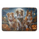 Unleash the spooky spirit with this eerie Halloween design featuring a pack of dogs under a dark, moonlit sky, surrounded by flying bats and glowing pumpkins. Perfect for those who love a touch of frightful fun with their furry friends!