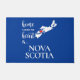 Nova Scotia home is where the heart is... in mixed cursive, serif and sans serif font with the silhouette of the Canadian province and a red heart overlay.