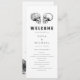 The NOVA 'Til Death Wedding Collection features vintage graphite florals, gothic skulls and skeletons with a festive Halloween inspired font. This collection is perfect for the edgy fall couple. Pair this wedding order of service program with the complete collection for an event that is sure to impress.