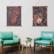 Hanging Tapestry featuring a photo of an autumn still life in warm natural colours: fallen brown and orange leaves, red berries of rowan. Rustic natural pattern for nature lovers, great addition to the country, farmhouse and dark cottage style home decor.