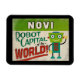 Un aimant frigo vintage Novi Michigan de charme avec un robot amusant et amical, ainsi qu'un texte amusant de style rétro qui dit, "Voyez-vous à Novi"