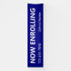 This now enrolling banner is navy blue. The text is white. It says now enrolling in a large font. Now enrolling is above additional text that you can edit to show a custom message such as your phone number and the school name.