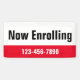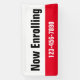 Now Enrolling Red Black White School Phone Number Banner