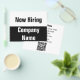 Front: The top portion is white with black text. (Shown: Now Hiring) The bottom portion is black with white text. (Shown: Company Name) Back: The back has lines of black display text you can edit to give pertinent details such as your address, email, website, phone number, and QR code. All text can be edited or deleted.