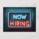 Now Hiring Neon Sign On Brick Postcard