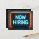 Now Hiring Neon Sign On Brick Postcard