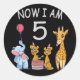 Now I am 5 years old 5th Birthday at the Zoo Classic Round Sticker