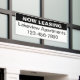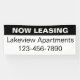 The top line of the display text is white and says NOW LEASING. The second line of the text is black and is for a custom message such as the apartment community name. The bottom line has black display digits for a phone number. All text can be edited or deleted.