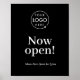 A modern black business logo opening times poster with classic typography in a minimalist style. The template can be easily updated with your company logo and business hours.